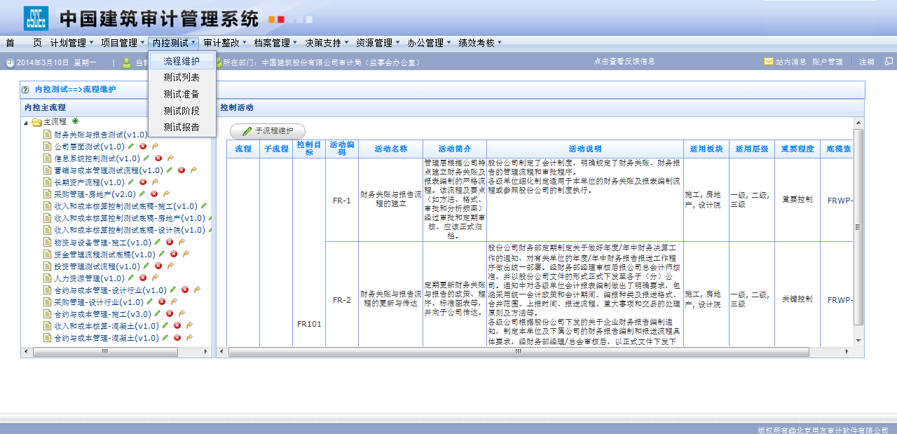 ■ 內控評價模塊是審計人員開展內控測試工作的平臺,嵌入了公司有關內控評價規范與標準,建立內控測試知識庫。自動實現公司內控量化評價、展現公司的風險分布,并出具相關統計匯總表。