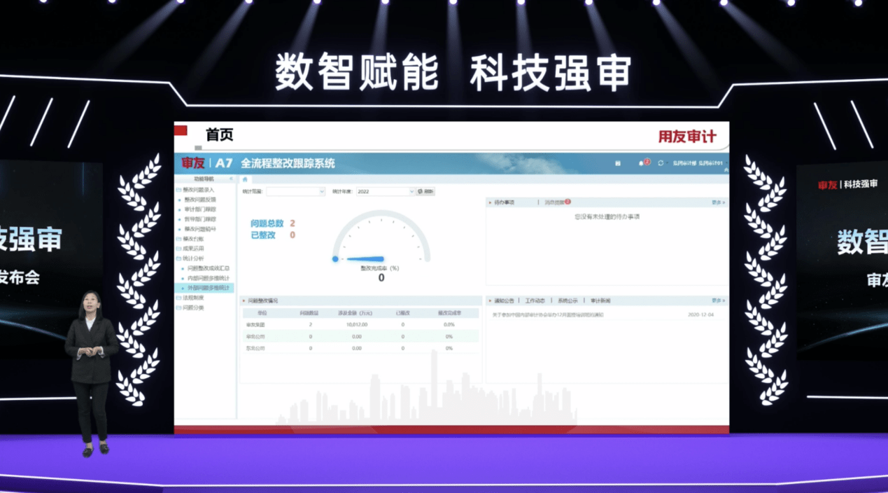 用友審計咨詢專家李繼艷表示整改跟蹤系統是為機構內部審計機構或其他監督部門的審計單位、督導部門、整改責任單位的經辦人和負責人提供的對內外部發現的問題進行整改落實、聯合督導、整改跟蹤評價的協同工作平臺。有助于壓實整改責任、形成部門協調配合的整改合力,促進問題按期、有效整改,實現審計問題整改工作的閉環管理。