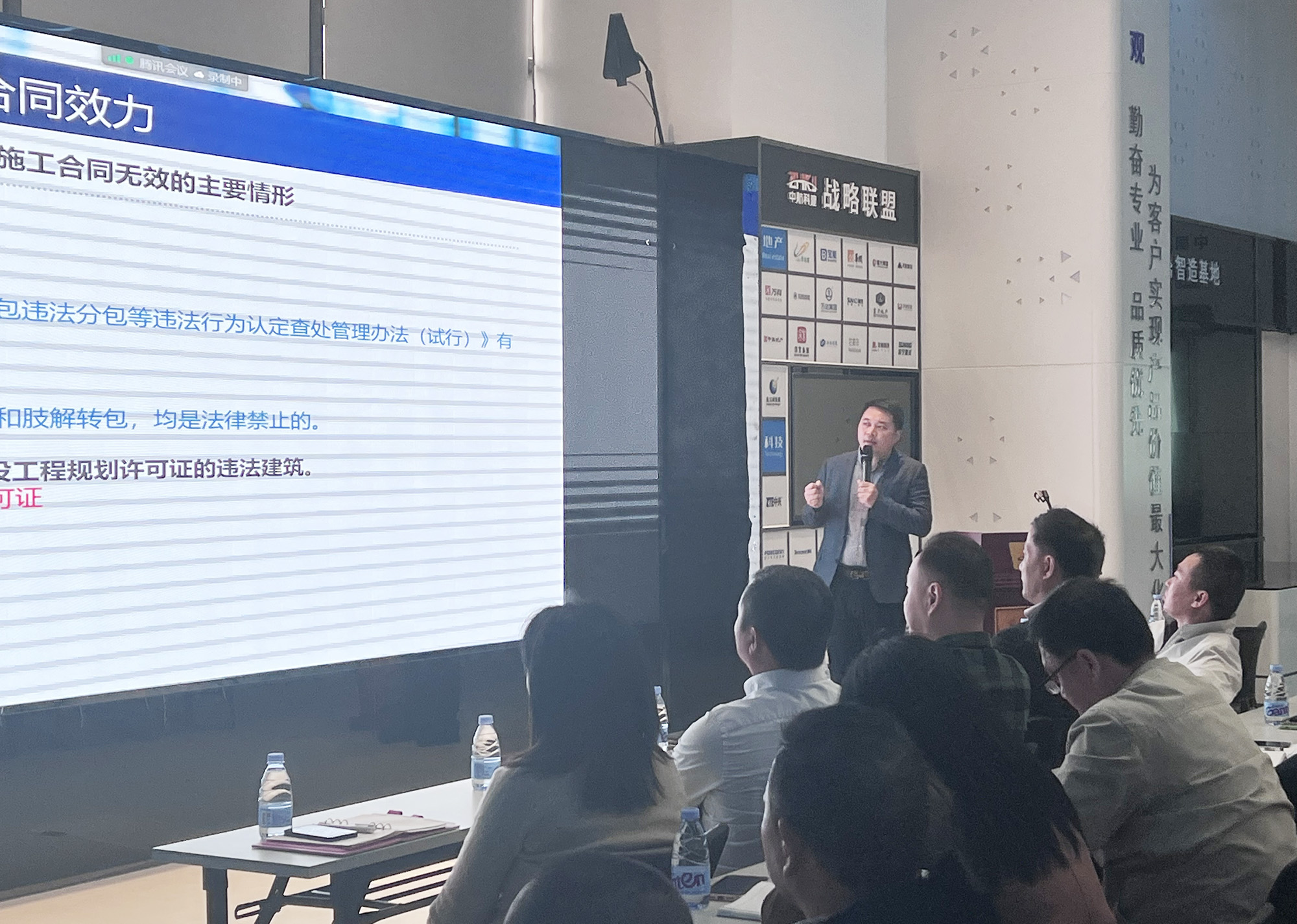 此次培訓邀請了深圳廣和律師事務所黃偉律師以建筑行業法律實務及工程管理風險防范為主題,對從合同簽訂與生效、合同管理到履行過程中的操作和風險防范,以及與建筑行業相關的重點法律規范等多方面內容進行了詳細講解,并結合公司實際工作,深入淺出地將晦澀難懂的法律條文和實際案例相結合,由案說法、以法析案,通俗易懂地介紹了工作中可能會遇到的相關法律知識,對日常工作中經常涉及的法律問題,應防范的法律風險進行了細致分析,為大家就如何防范經營法律風險、合規風險等公司治理中的重點問題上提供了有效指導。
