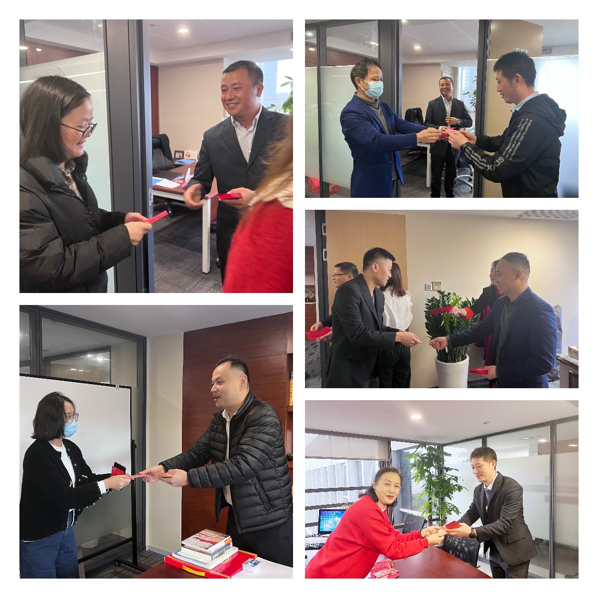 ? ? ? 同事們穿梭在辦公室間向集團領導和各部門同事拜年, 用自己的方式向大家傳遞著新年的祝福。