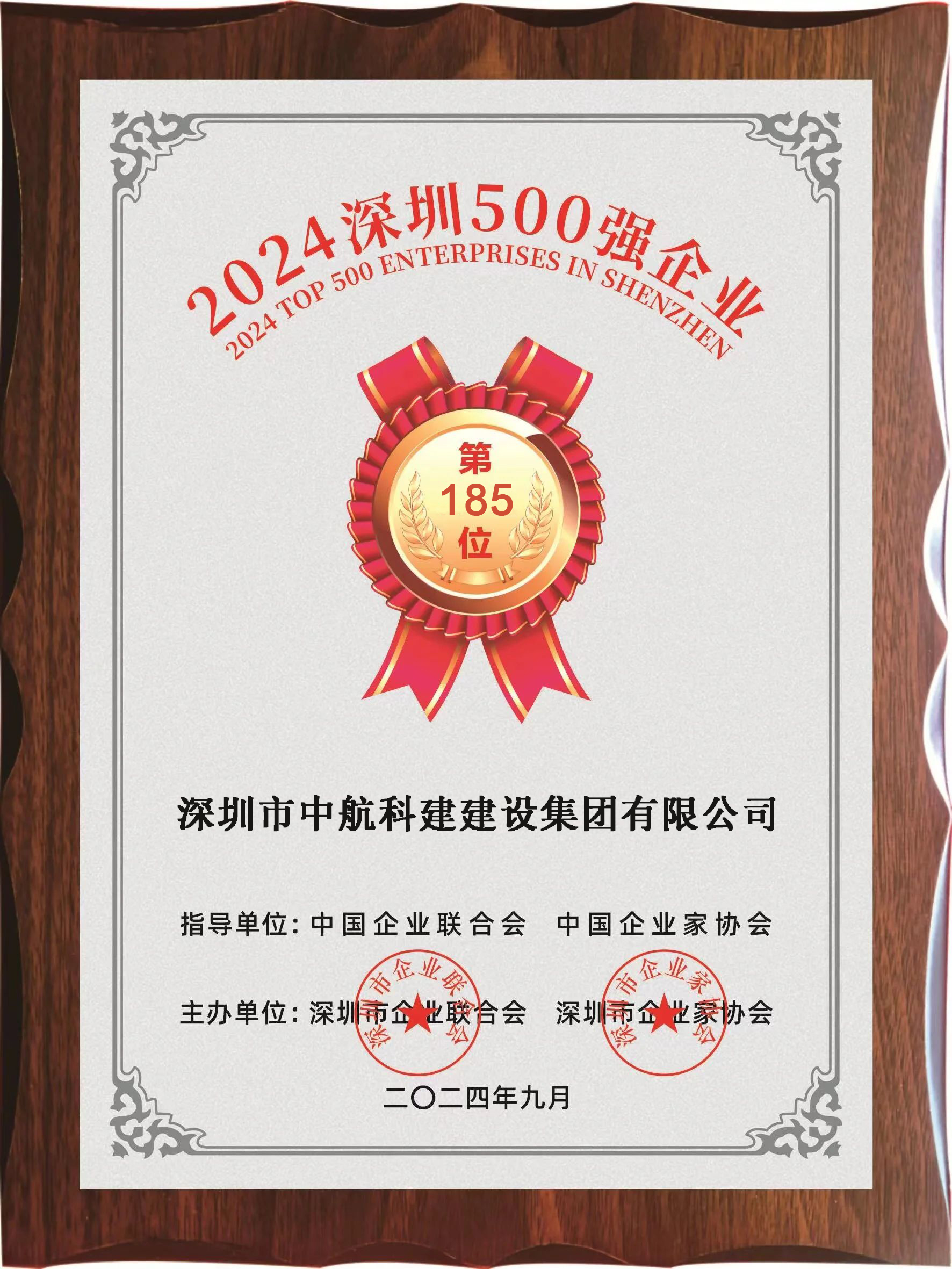 近日,深圳市企業聯合會與深圳市企業家協會聯合發布了備受矚目的“2024深圳企業500強榜單”及《2024深圳500強企業發展報告》,中航科建建設集團憑借其卓越的經營業績和穩健的發展趨勢,再度上榜,位列第185位。