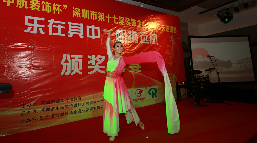 ? ? ? ?精彩的比賽結(jié)束后,熱鬧友好的氣氛一直延續(xù)到晚上,大家歡聚一堂,頒獎(jiǎng)晚宴在精彩的節(jié)目表演中開始。深圳裝飾行業(yè)協(xié)會(huì)會(huì)長高剛致辭盛贊此次邀請(qǐng)賽的成功,對(duì)前來參與的行業(yè)精英表示感謝和對(duì)獲獎(jiǎng)?wù)弑硎咀YR,并就此次裝飾行業(yè)“營改增”政策應(yīng)對(duì)問題做了分析與強(qiáng)調(diào)。接下來,在歡歌笑語中頒發(fā)了本次賽事的各項(xiàng)獎(jiǎng)杯與獎(jiǎng)品,其中激動(dòng)人心的抽獎(jiǎng)環(huán)節(jié)更是將晚宴氣氛一次一次的推向高潮。