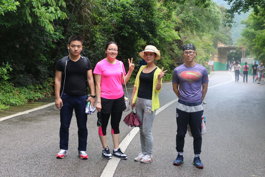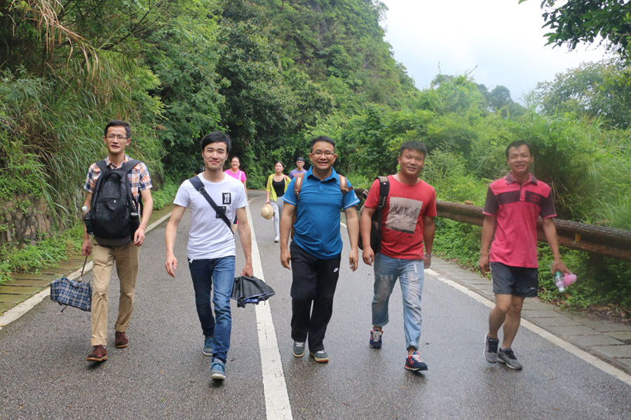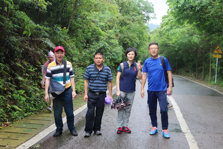 首夏猶清和,芳草亦未歇。深圳的五月,陽光正好,微風不燥。中航裝飾集團的小伙伴們就在這惠風和暢的天氣里向深圳最高峰——梧桐山發起了挑戰。雖然上午剛到山底就飄了點小雨,但大家登山的熱情不減,情緒高昂。石英董事長更是一馬當先,帶領大家沿著逶迤盤旋的山路,穿過蔭翳的林木,向山頂一路攀登。雖然道路曲折漫長,但是沿途風景優美,為增加本次活動的趣味性與挑戰性,我們更是事先在沿途放置了一些卡紙,在活動中增加了“尋寶”游戲,讓大家在爬山的過程中,體會尋寶的樂趣。大家樂此不彼,在不斷尋找的過程中似乎也忘記了一路攀登的辛苦。一路上,大家相互扶持鼓舞,以堅定的信念、頑強的毅力不斷往上攀登,挑戰每一個臺階,每一段路途,朝著山頂目標勇敢的前進。當站在鵬城第一峰的山頂,迎著晨暉,眺望遠方,因天氣原因,能見度不高,少了海闊天空,一覽眾山小之感,但頗有鳳兮來儀、飄飄欲仙之意。稍事休息后,我們就開始下山了,下山途中大家也是互相扶持,秉持著不落下一個隊友的原則,順利返回山底,在山底的農家樂餐館用了晚餐。